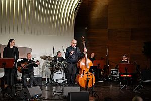 Występuje solo, w duecie, z kwartetem smyczkowym, czy z orkiestrą, śpiewając i grając na kontrabasie, ale tym razem mogliśmy go podziwiać z zespołem w składzie: Krzysztof Mroziak (fortepian), Grzegorz Wziątka (gitara), Andrzej Mozgała (saksofon sopranowy), Natalia Kmita (skrzypce), Bartosz Gerula (perkusja), oraz Rozalia Białorucka i Katarzyna Motyka (chórek).
